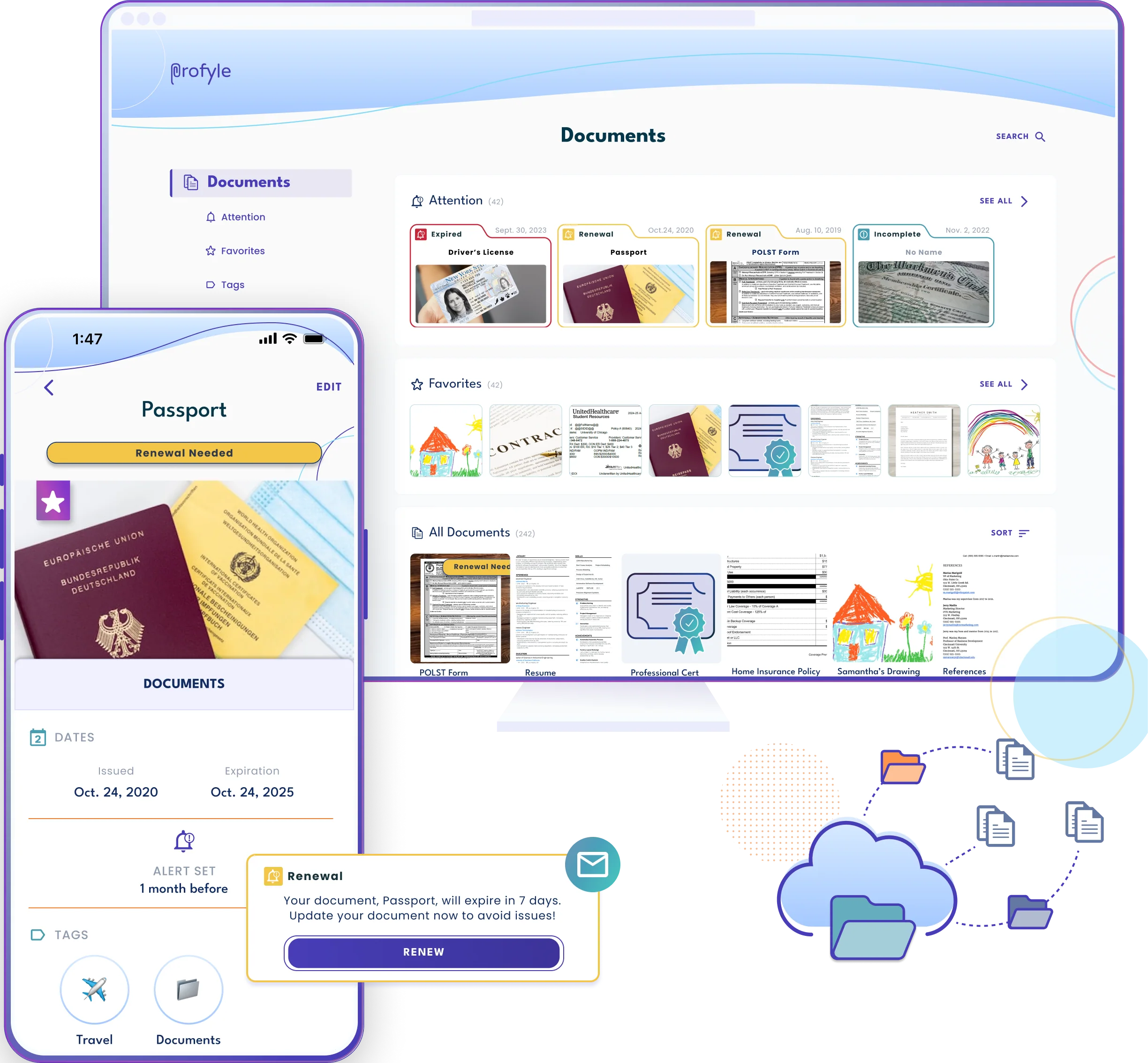 Profyle lets you Take Control of Your Important Documents. Your Profyle makes it easy to securely store and organize, and get reminders about your most important personal and professional documents—all in one place. You can even share select documents securely if you want to. It’s your Profyle.