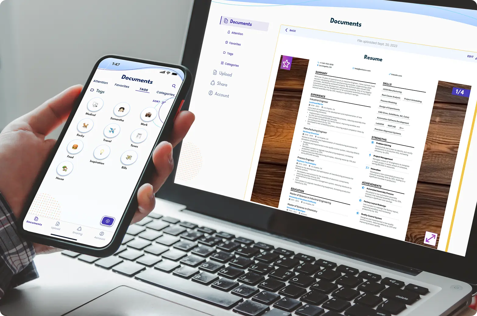 Snap a photo with your phone or upload files from your computer. Profyle keeps them safe, organized, and accessible.